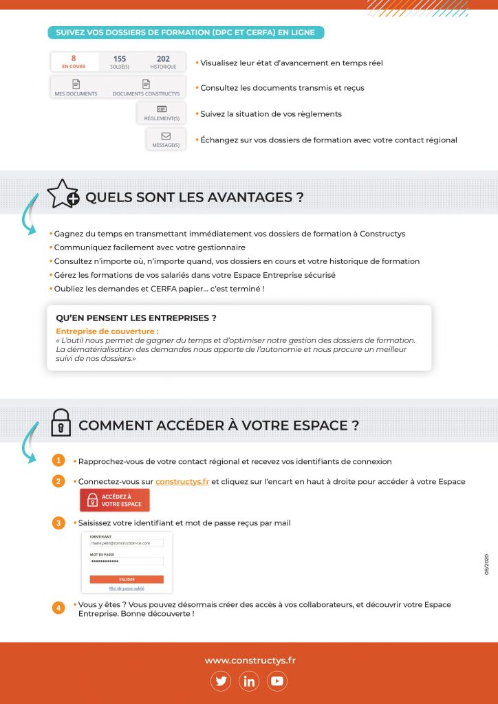Constructys vous propose dès aujourd’hui de gagner du temps grâce au suivi en ligne de vos dossiers :