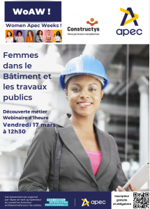 Dans le cadre de cette opération et pour promouvoir les métiers de la Construction auprès des femmes, Constructys Auvergne-Rhône-Alpes co-animera un webinaire « Les femmes dans le bâtiment, les travaux publics et le négoce » le vendredi 17 mars 2023 de 12H30 à 13H30.