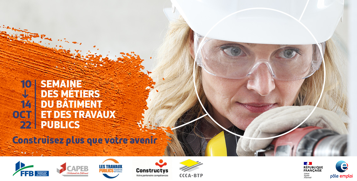 Les métiers du bâtiment et des travaux publics recrutent et représentent un secteur en constante évolution. L’objectif est de donner de la visibilité sur les différents recrutements sur l’ensemble du territoire, informer sur les métiers et perspectives de carrières et sur la formation liée à ces métiers, mais aussi démontrer l’accessibilité de ces métiers aux femmes et aux personnes en situation de handicap.