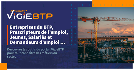 Afin de répondre aux besoins en recrutement et à l’évolution des métiers du secteur en Ile de France, Constructys en partenariat avec l’Etat, les organisations professionnelles du Bâtiment et des Travaux Publics et Pôle Emploi a construit le portail VIGIE BTP.