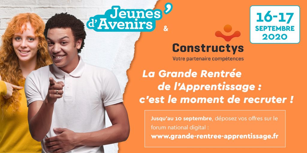 La Grande Rentrée de l’Apprentissage, c’est un forum national digital, organisé par le Groupe AEF info qui aura lieu les 16 & 17 septembre. Il met en lien des recruteurs de toute la France avec des jeunes de 16 à 30 ans à la recherche d’un contrat en apprentissage, tout secteur confondu.