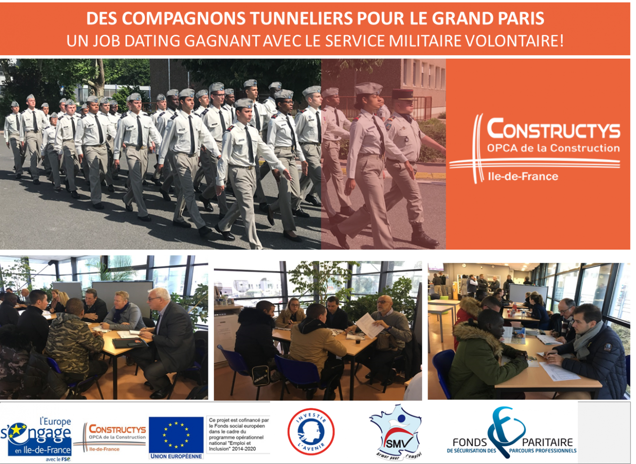 100 % des stagiaires issus de ce dispositif SMV (Service Militaire Volontaire) se sont vus proposer un stage au sein des grandes entreprises du BTP (Bouygues TP, Colas Ile-de-France Normandie, Demathieu & Bard, Eiffage Génie Civil, Léon Grosse et Vinci Insertion Emploi) pour à terme occuper la fonction d’Opérateur Tunnelier-Coffreur dans le cadre d’un contrat de Professionnalisation ou d’un CDI. Les entreprises souhaitent voir ce dispositif se renouveler dans le cadre de leur politique de recrutement.