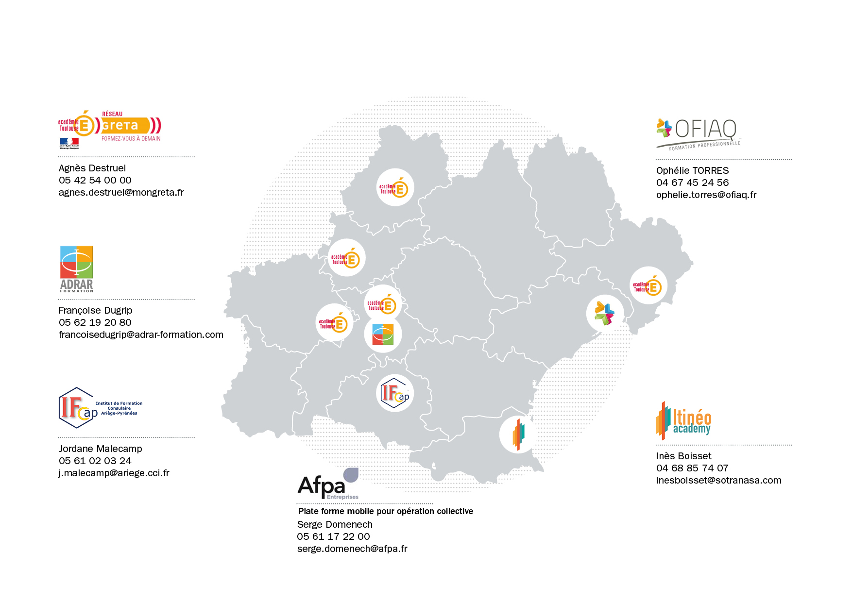 AFPA – Serge Domenech au 05 61 17 22 00 – serge.domenech@afpa.fr (plateau mobile pour formation collective)