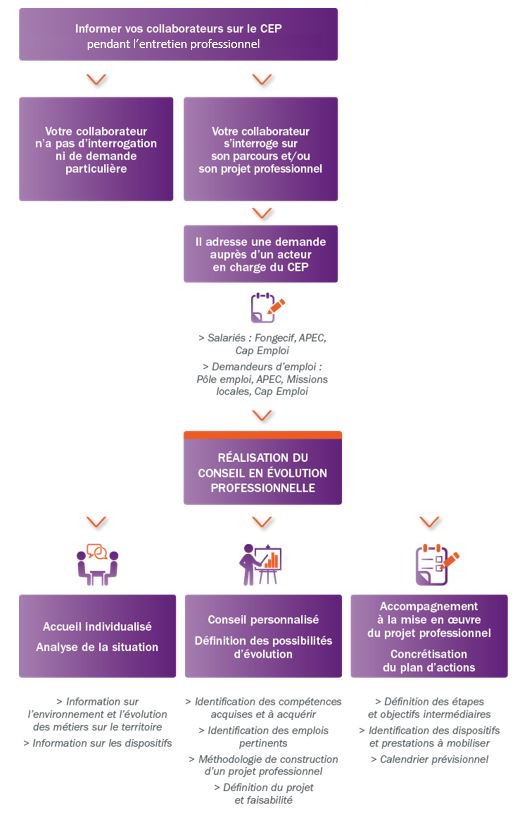 Vous êtes donc un relais entre vos salariés et les acteurs en charge du Conseil en Évolution Professionnelle. Le CEP est réalisé en dehors du temps de travail.