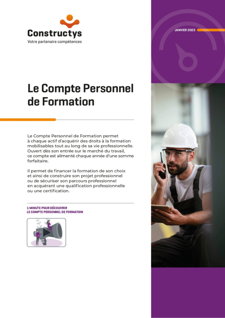 Le Compte Personnel de Formation permet à chaque actif d’acquérir des droits à la formation mobilisables tout au long de sa vie professionnelle. Ouvert dès son entrée sur le marché du travail, ce compte est alimenté chaque année d’une somme forfaitaire.