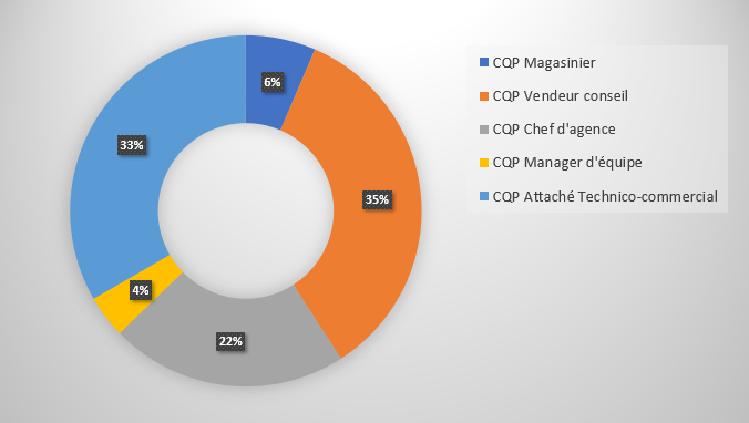 En 2019, 360 nouveaux salariés ou salariés en poste de la banche sont devenus titulaires d’un CQP avec la répartition suivante :
